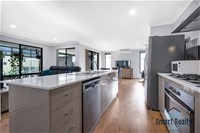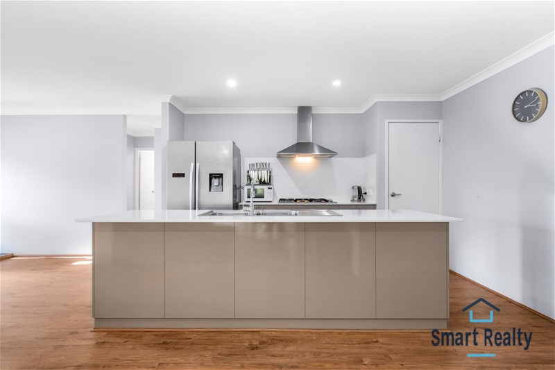 The large open plan living, dining and kitchen is sure to be the heart of the home, with gorgeous natural lighting, floorboards, and an all neutral colour scheme. The large kitchen is fully equipped with modern stainless-steel appliances and plenty of storage for all the essentials. There is a large breakfast bar for those busy mornings before work and school.