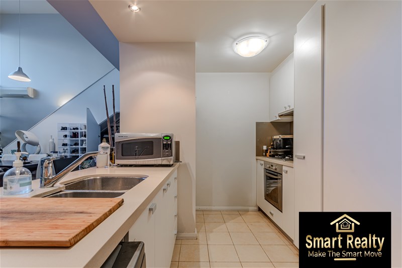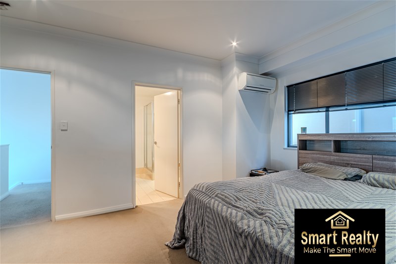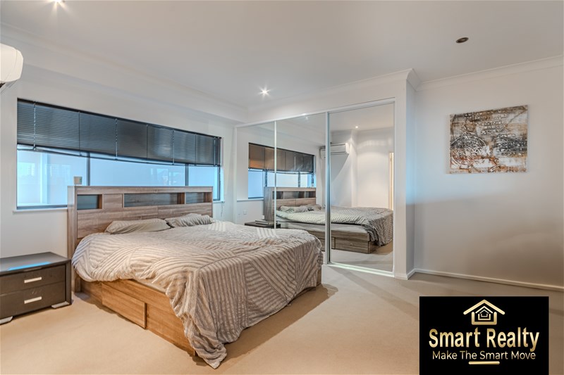 Upstairs there is an extra-large Master bedroom with a landing overlooking the rest of the apartment. The bedroom is fitted with large built-in robes and its own private ensuite with stunning double vanity and plenty of storage.
