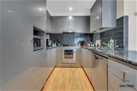 Enter the apartment into a spacious and grand open plan living and dining area, with high ceilings and glass sliding doors out onto the covered balcony with the most stunning city views. The well-equipped kitchen features solid granite benchtops, plenty of storage and cupboard space and all modern stainless-steel appliances. As an extra bonus, the apartment has its own laundry room tucked away and out of sight, but with everything you need.