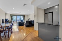 - Open plan living and dining with high ceilings, ducted cooling, wooden floorboards, and glass sliding doors out onto undercover balcony